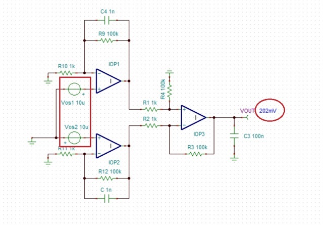 3.即使您通过将C2精确充电至1V并从V8中减去它,将输入差分电压降至零,您仍需要考虑OPA4392最大偏移电压+/-10uV导致的高达202mV的输出误差-见下文。