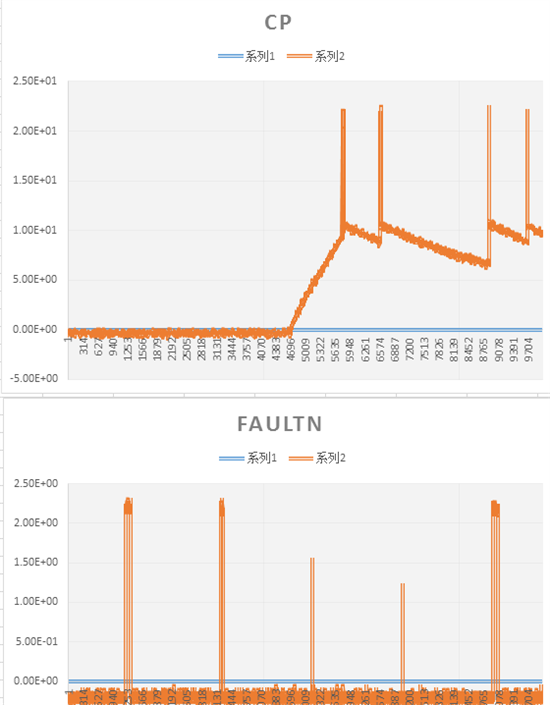 在输入PWM以后,电荷泵电容两边的波形就不正常了,GVDD也有一些抖动,但大于8V。此时PWM输出不正常,表现状态为输出了两个或者一个PWM后就被拉低,然后一直重复,SPI通信也中断,读寄存器都是0,FAULTn和OTCW都报错。