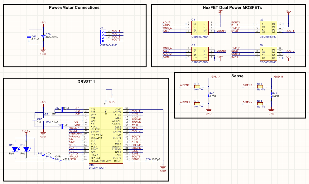电路参考BOOST_DRV8711设计,24V供电,每相电流2A,64细分,STEP,DIR加SPI控制方式,寄存器配置如下: