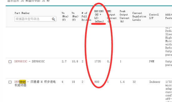 第一张图片是芯片手册给出的RDS的导通电阻550R左右,第2张图片是ti官网给出的RDS导通电阻在900度R,前后有矛盾
