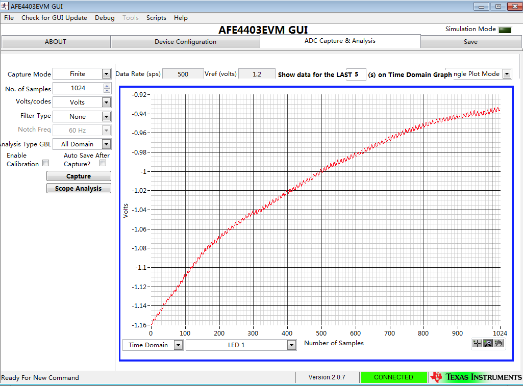 你们好,我正在使用AFE4403 WATCH EVM采集PPG信号,我主要想的是把原始信号采集出来,自己写算法来提出血氧浓度,有一些问题: