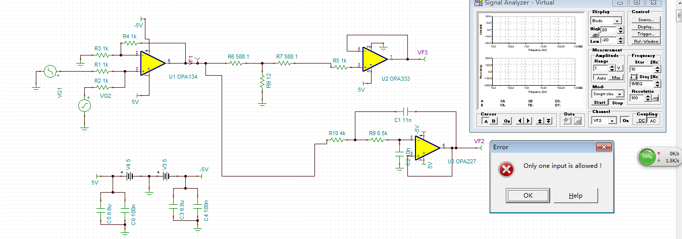 在使用信号分析仪的时候,一按start就,告知我 only one input is allowed。改成一个信号源输入,VF2位输入还是出现这个错误。求问怎么解决?