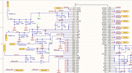 2.焊接电阻电容时,VSUB引脚接-48V时的旁路电容C35(如图),以及VDN引脚接-10V的旁路电容C32(如图)焊错了,本来应为-48V到地的一个电容,-10V到地的一个电容,现在不小心焊成了-48V和-10V之间接一个电容,然后DGND和DGND之间接了一个电容,这样有可能造成芯片烧毁吗?急求解答!谢谢!