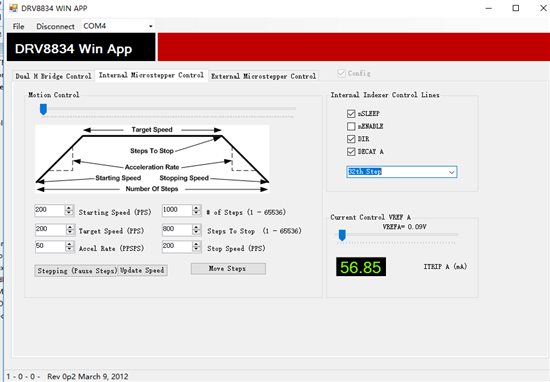DRV8834 Win App软件连接DRV8834EVM评估板,控制一个两项步进电机