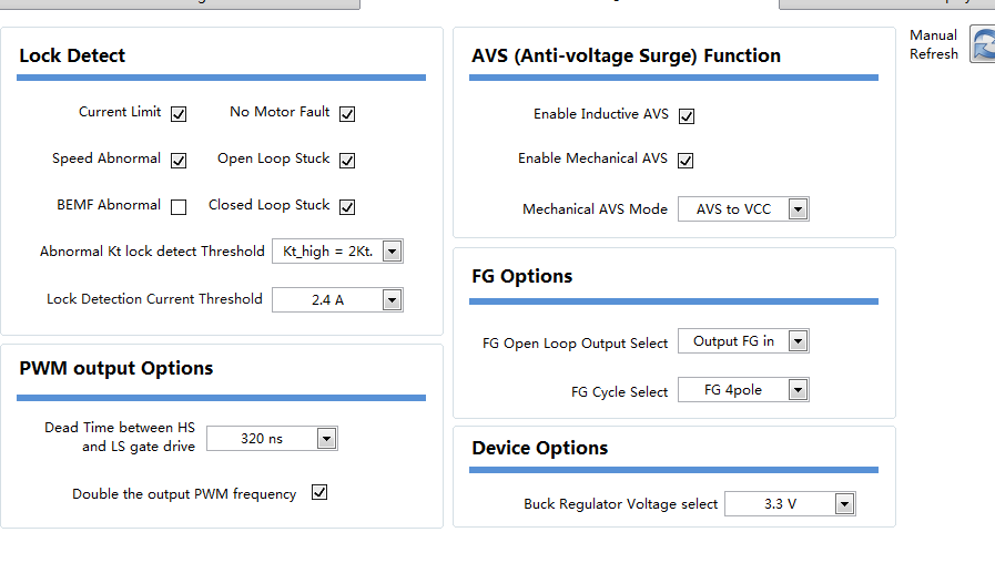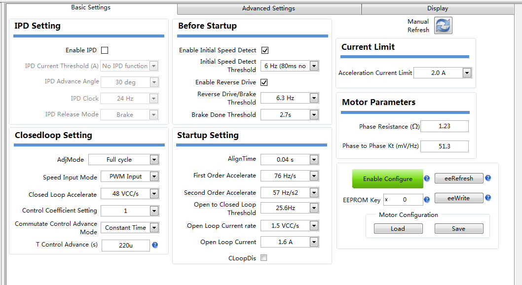 2、快速启动响应,必定初级加速和次级加速都会设置相对来说比较大,但是这样带来的结果就是,初级启动的时候,电流会在短时间内冲击太大,很可能会超过你设置的2.0A,从而触发Lock Detect中勾选的过流保护,启动易失败。