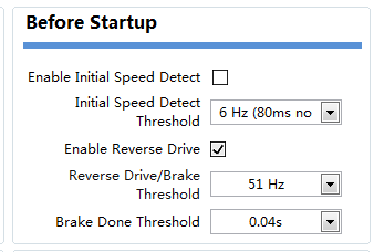 4、反转设置的Brake done 阈值时间是根据电机的参数来的,KT值越大,相应的时间就应该设置长一点,否则会出现,还没刹车结束就立马启动,容易造成电机失步,卡顿。