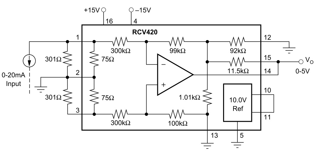 我用RCV420芯片做了一个电路,想用这个芯片完成4-20mA电流信号转换为0-5V电压信号,芯片用±15V电源供电,测试时发现,当芯片的3引脚也就是电流信号输入引脚,没有电流信号输入时,芯片的14引脚,也就是输出电压信号引脚输出了-1.2V电压,当有4mA电流输入时,芯片就没有-1.2V电压输出了,输出0V电压,请问这种情况是怎样造成的?我用了3个RCV420芯片,都出现了这样的情况。RCV420的输出电压引脚连接模数转换器TLC549芯片,TLC549在没有电压输入时,2引脚也就是电压输入引脚有0.15V电压输出,当有0V电压输入时,也就是有4mA电流输入RCV420时,TLC549的输入引脚就没有0.15V电压输出了,是0V,这又是什么原因造成的?给RCV420供电的电源输出的电压不是精确的±15V,是+14.986V和-14.875V,给TLC549提供的基准电压不是精确的+5V,是约+5.2V,是否有可能是电源电压不精确造成的上述情况?