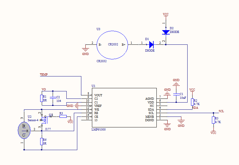 电路如图。使用需要带偏压的传感器 Vcc=3.14V  偏置电压10% Vref 大约314mV,零点20%。理论上传感器在纯净空气中应该输出零点电压,即20%Vref.大约0.63V。