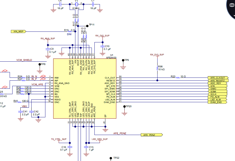 不是说一定要连到单片机,要看评估板中单片机的时钟需要的是否为4Mhz的频率,AFE4400的CLKOUT是内部时钟buffer输出的4MHz的时钟信号,可以作为外部器件的时钟输入。