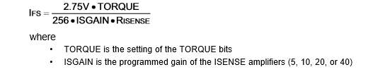 若,TORQUE = 0x10BA(低8位 186) ISGAIN 位设为11 ISGAIN = 40 R = 50 毫欧