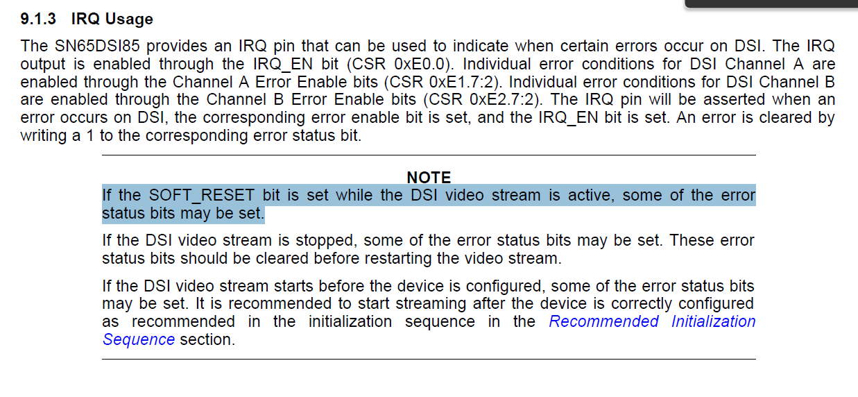 使用主机侧MIPI高速时钟作为sn65dsi85时钟源,请教初始化时对MIPI主机侧的时序要求是怎么样?哪个步骤开始输出高速时钟?