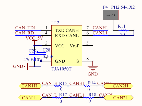上图中从P4出来的CAN 信号接你推荐这个芯片的D+D-,然后从这个芯片输出两路,一路是CAN1,一路是CAN2,这样就实现一路CAN切换到两路CAN
