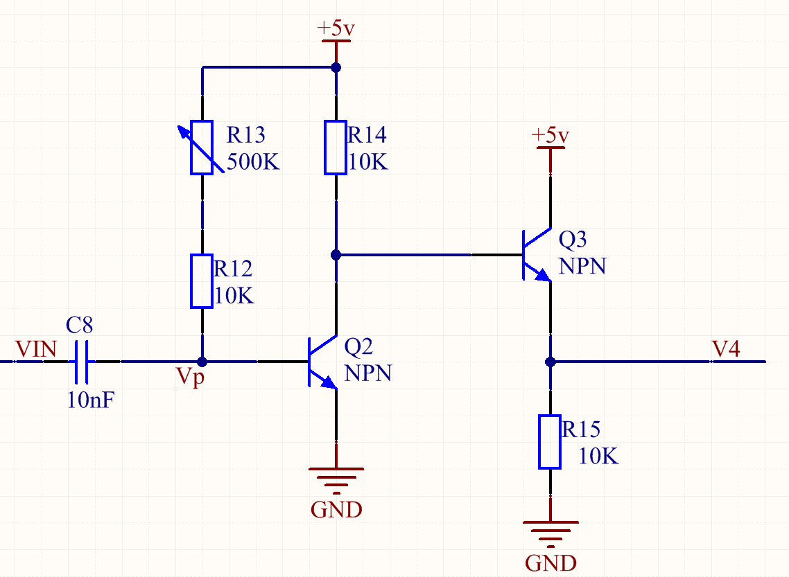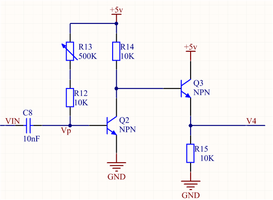 应该是没有影响的,不管R13如何变化,Vp电压为0V,Q2工作在截止区,Q3导通,V4电压接近5V。