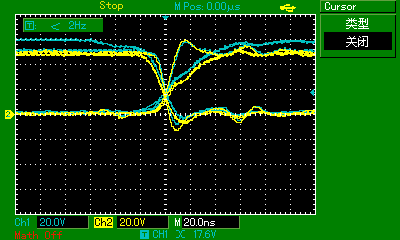 为了解决PDF错误,在LowSideGate上连了100ohm电阻,DTIME为850ns。IDRIVEP、IDRIVEN为最小值,尝试太多种细分数、TOFF、TBLANK、TDECAY、DECMOD组合,仍未得到比较好的结果。目前都是在低速下进行优化,然后进行加速测试,基本上都PDF了,在All Mixed下还未测试得到可一组可以长时间运行的参数,只要变速就PDF,默认模式下却可以。有一组参数在001模式(默认模式)下可以变速,但是相当不稳定,有时候几秒,有时候几十分钟,且该模式在低速下运行效果不如All Mixed。