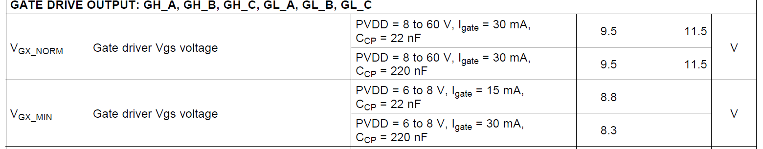 想问一下用过DRV8301的人们,这个芯片正常情况下的GH,GL输出高电平应该是多少伏,谢谢?