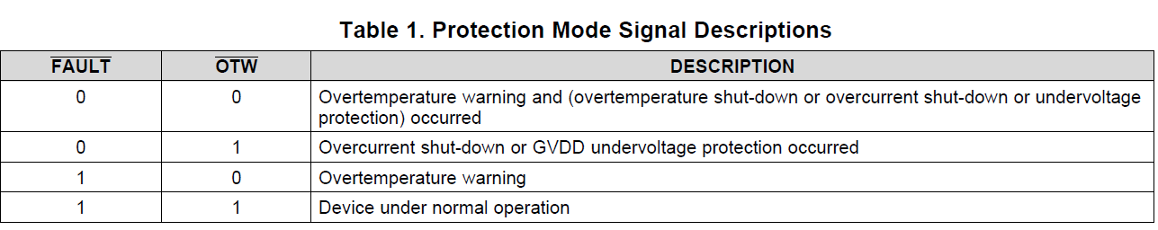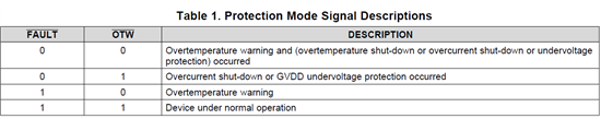 以上都没有问题,但是我短接OUTA和OUTB之后,OTW与FAULT引脚无低电平输出,一直都为高,所以导致主控芯片无法知道驱动出现了故障。