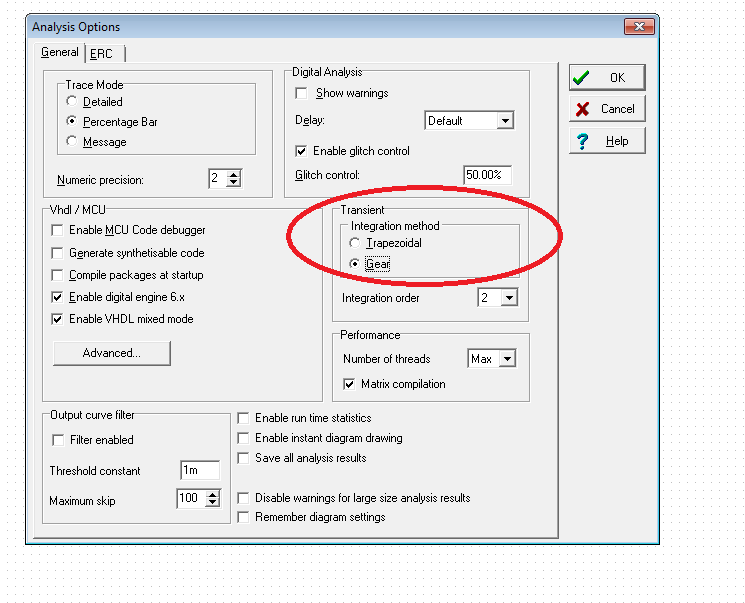 把任务栏中的Analysis--option中的numeric integration method由默认的Gear改为trapezoidal之后再仿真试试。