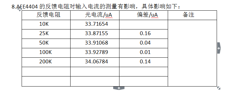 在同一LED亮度下,AFE4404选择不同的反馈电阻测量到的光电二极管的电流由0.01-0.16uA的差异(选择不同的放大倍数,再将采样后的电压除以反馈电阻值得到光电二极管电流)