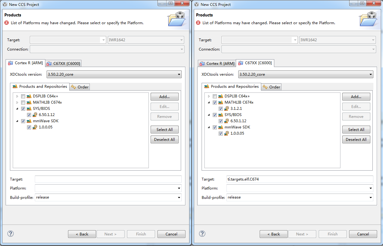 用CCS7.2创建IWR1642的工程部成功,不知道怎么解决