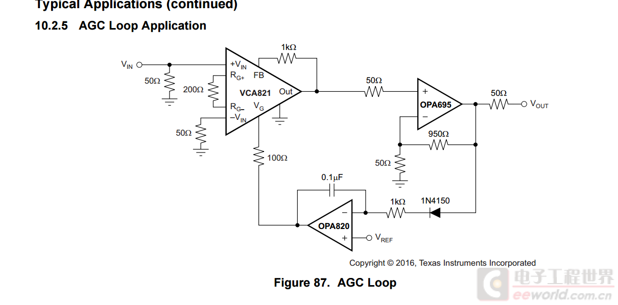 用VCA821做的AGC电路中,OPA695和OPA820在这个AGC电路的作用是什么?因为官网没有细说,能具体解释一下这个AGC电路的工作原理?谢谢了