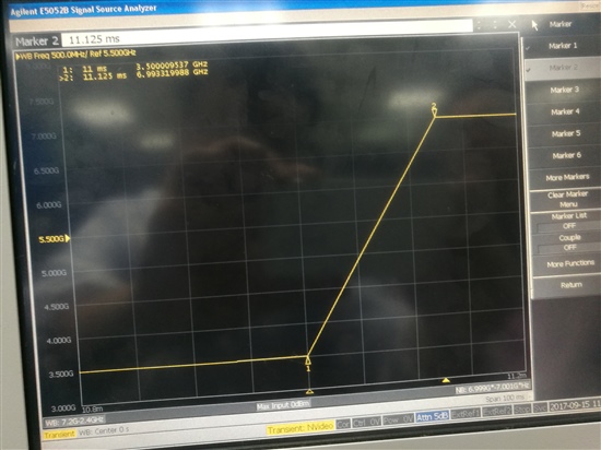 请问一下LMX2594锁定时间是怎么测出来的?这边用评估板测试结果跟手册上不对应,麻烦告诉一下测试条件哈,测试时快速校准开启