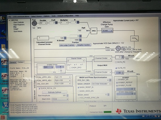 我们测试时,直接用上位机控制评估板,不管怎么测都测不出手册上给的结果,麻烦告知一下,你们是怎么测出来的哈,包括上位机的设置,环路带宽以及其他条件。同样,测试LMX2592锁定时间也有同样的问题,还有就是LMX2592说的是可以到9.8G,实际只能锁到9.6G,当大于9.6G时,锁出的频率还是9.6G,而且还是锁定的,请问一下这是什么原因,同样,在锁5G的时候,锁出的频率只有4.8G,而且也是锁定的,请问一下这又是什么原因?测试时没有遇到这种情况吗?还是遇到这些点有什么特殊的设置,但是手册上却找不到,还望给指点哈,时间有点急,还请快点给出答案哈。不胜感激!