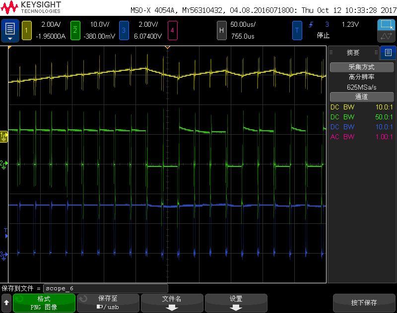 在较高的DUTY情况下,电流较难以控制在设定点。