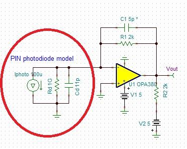 可以使用电流源搭建一个PIN phtoediode 模型。