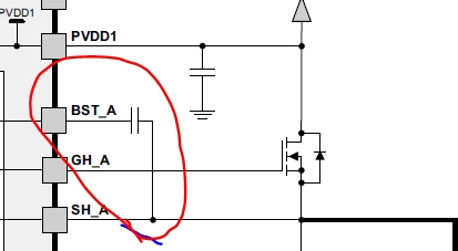 下图是DRV8301的参考设计。可以看出每一相的输出都添加了自举电容。