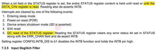 这段话我理解的是,读取data_chx寄存器也能使INTB引脚电平恢复为低电平,但实际上只有读state寄存器才可以。哪位有人能给详细解释一下吗?