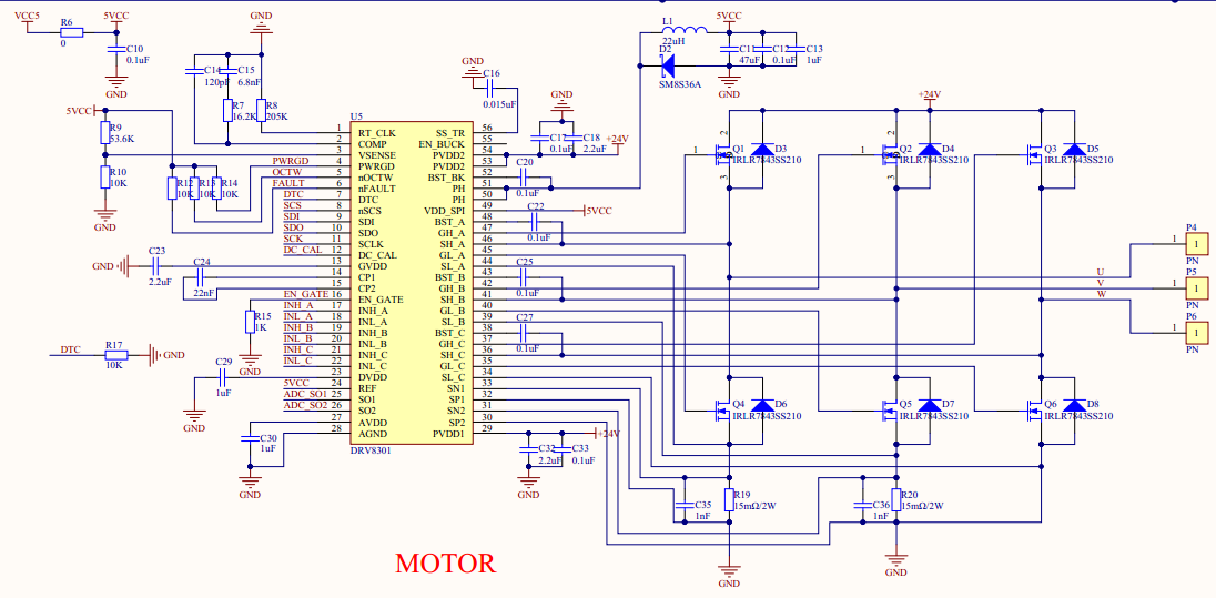 2、原理图祥见附件,另外未对DRV8301的寄存器做任何配置,均是默认设置。