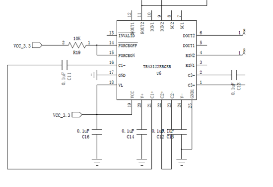 TRS3122电平转换芯片DOUT输出为+5.5V,之前的都是-5.5V,且此条件下能发送数据不能接收数据?输出端DB9母头接入USB转232串口线后RIN脚电平为-6.5V左右,寻求异常原因。感谢