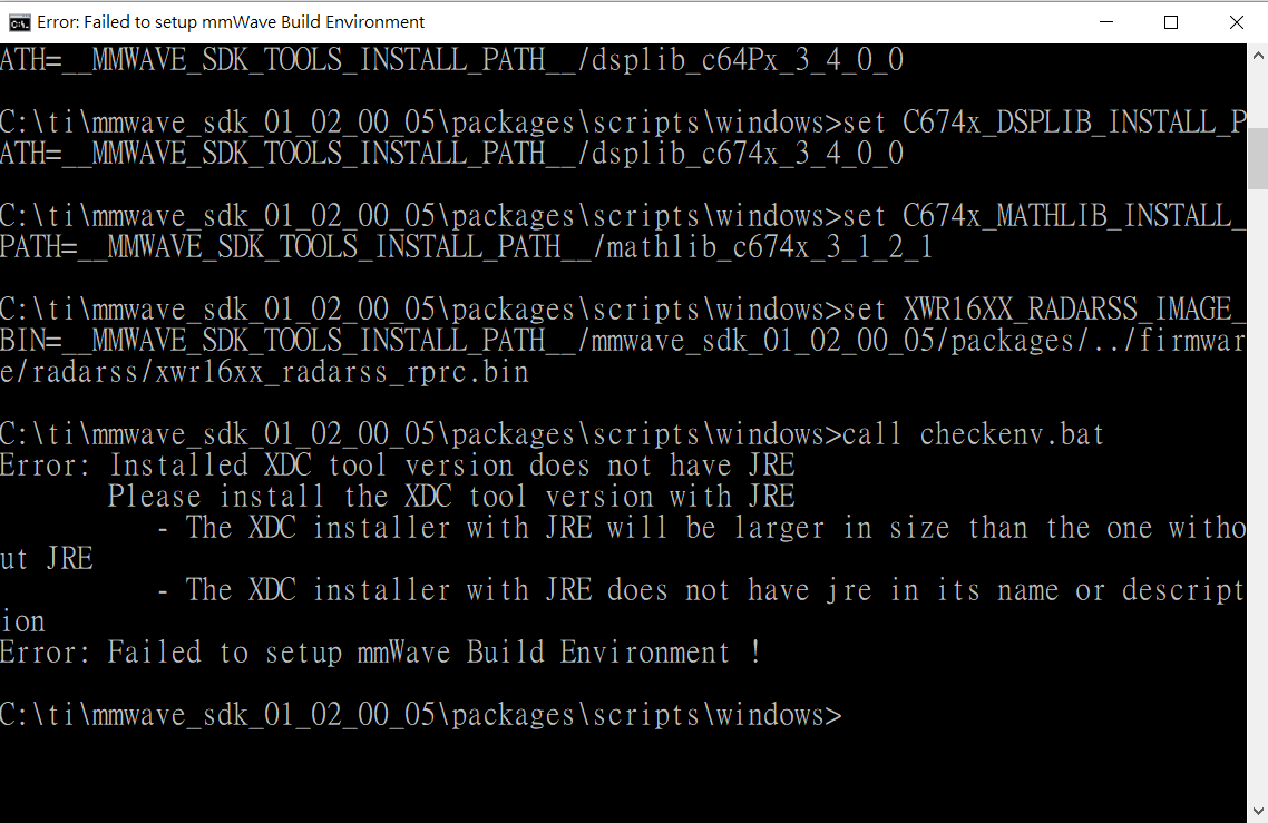 但我在运行checkenv.bat却说找不到jre且建置失败