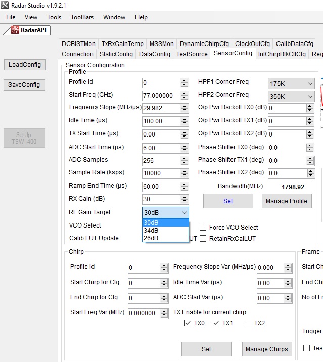 SDK demo中的profileCfg只能设置 Rx Gain从24-48dB