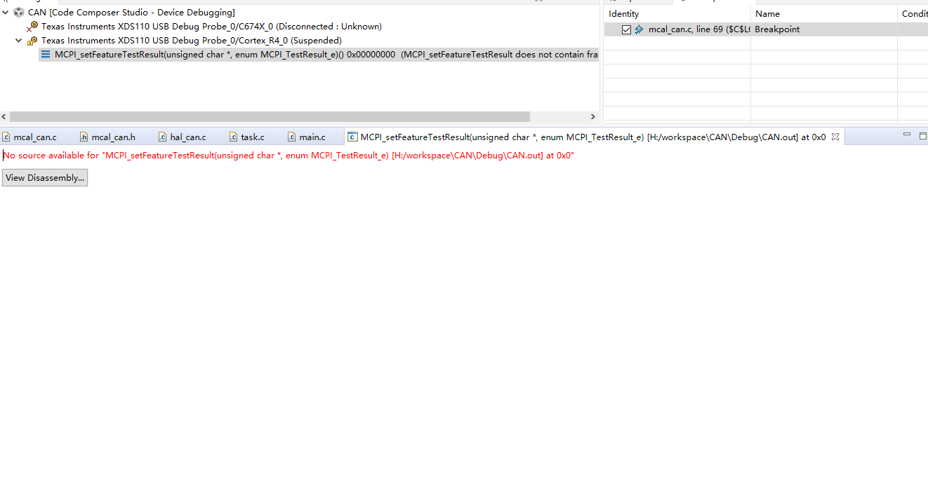 这个不是出错。只是CCS找不到对应的CAN所调用的文件,你确认下是否有Load C file这个选项/按钮。把对应的C file加载进去。