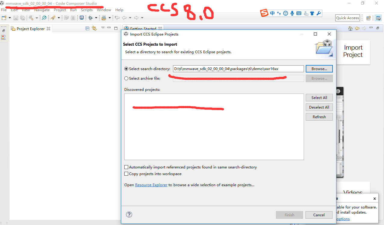 打开CCS,View->Resource Explorer->software->mmwave sensor->industrial toolbox -> lab-> mmwave SDK demo -> import to CCS.