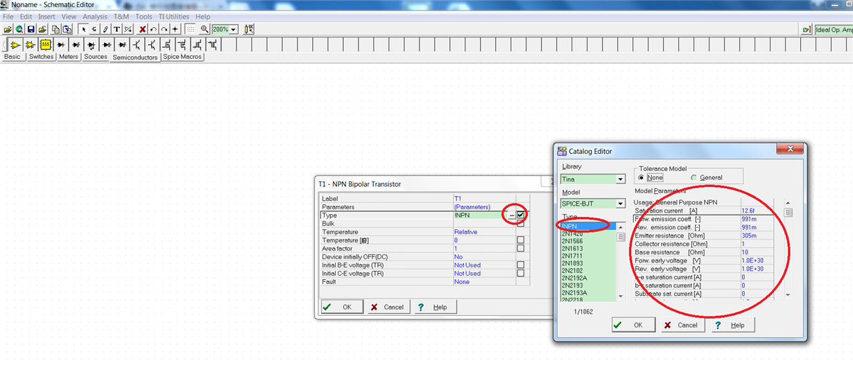 使用的三极管型号是2SC3356,由于我没有找到pspice模型,(谁要是能找到的话,给我发一份也可以,谢谢了)。所以想在Tina-TI中自定义该器件的参数。