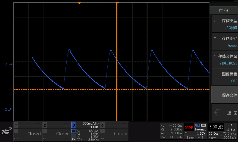 R=10K,C=102,根据公式Toff=10us;