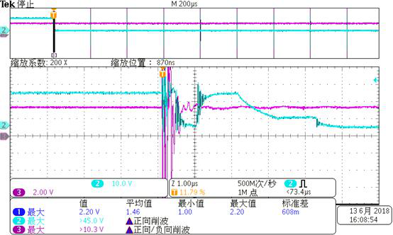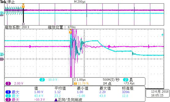 1.原边FAULT_A(3通道)与相应门极输出(2通道)