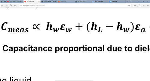 这个式子说明了这是一个差分传感器,用比率法测量电容,然后再乘单位参考液位得出了液位高度,可是我想请教下TI工程师这个式子中运用差分法求电容的部分中,这几个电容值是怎么测量出来的,以及它们有什么意思