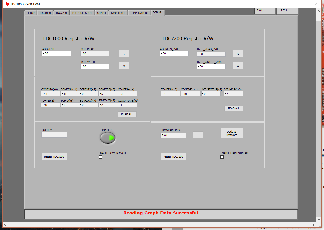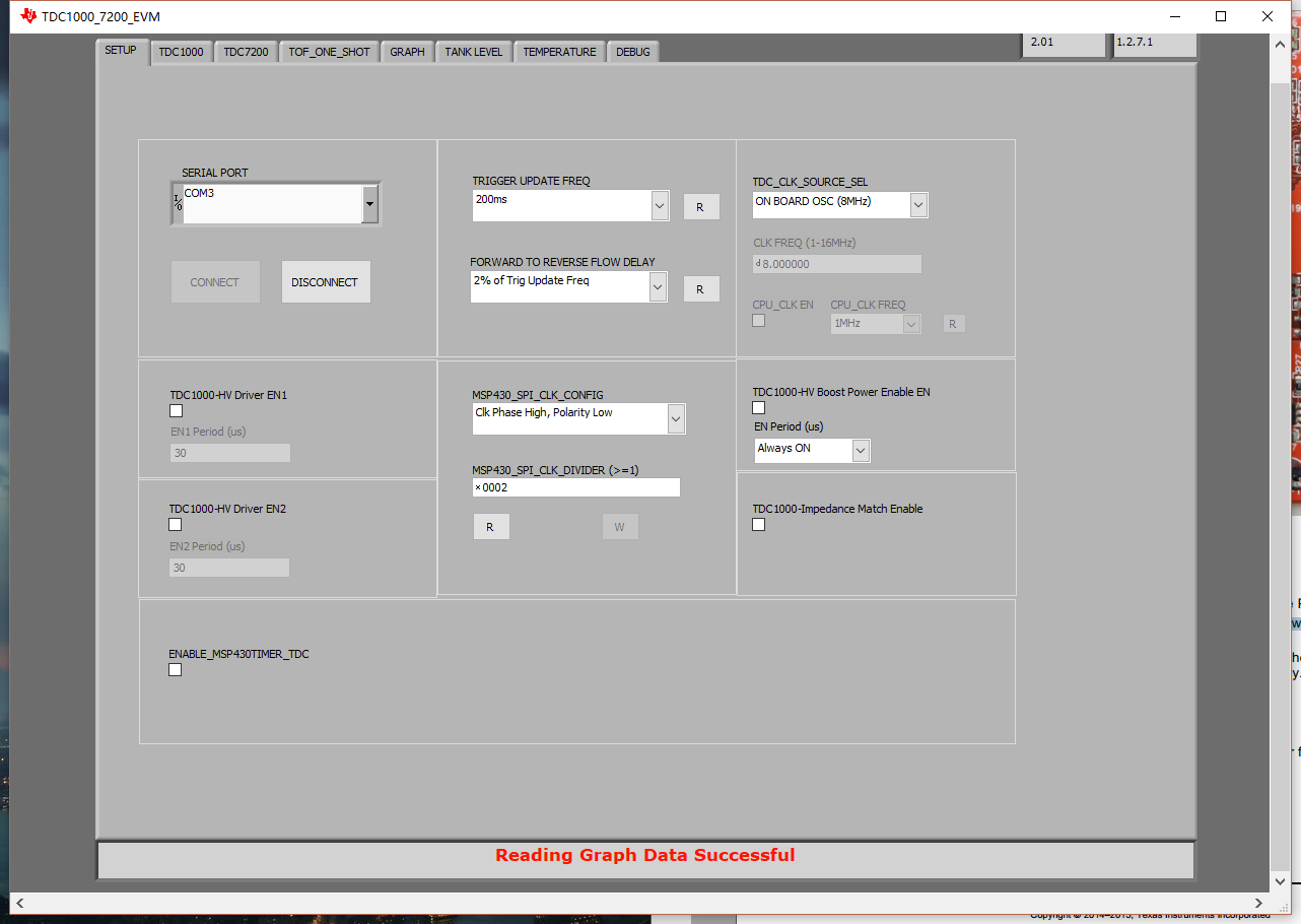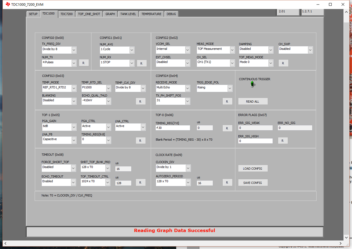 TDC1000_TDC7200EVM,如何调试参数,才能达到对于液体的测量效果,实验室买了块板子,但是测量出来一直是37us