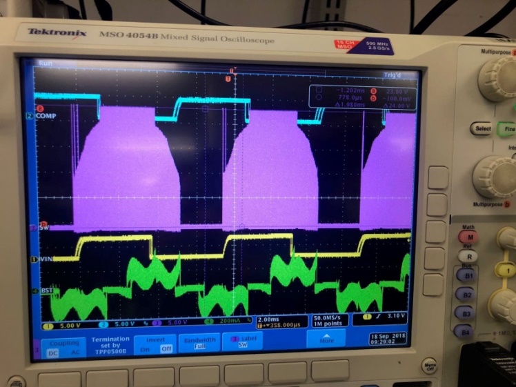 下图是120度换向模式下测得波形,紫线是V相电压,绿线是V相电流,理想的电流波形应该是图2所示,但是实际测得的电流线上升后下降到0,而不是恒定值,我认为这和换向瞬间的电流衰减有关,但就是不知道换向的一瞬间电流是如何衰减的,三相桥处于一个什么样的状态?此外紫线的电压波形可以解释一下吗?