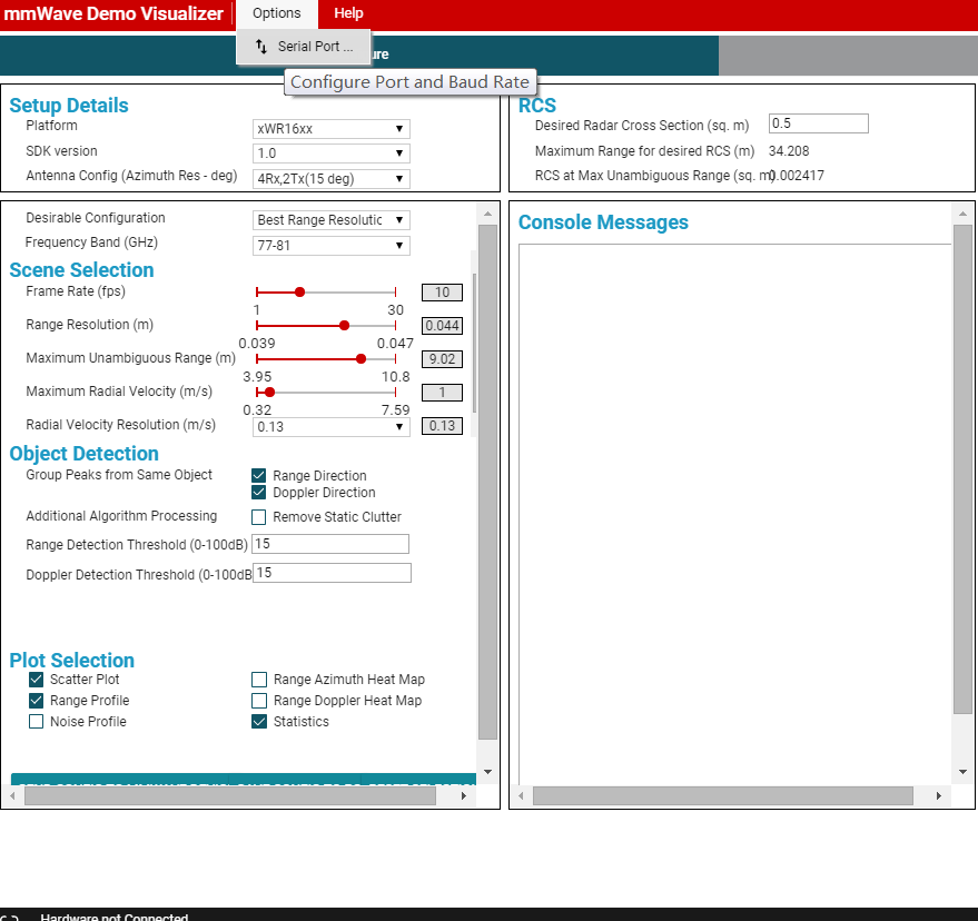 毫米波雷达GUI串口连接