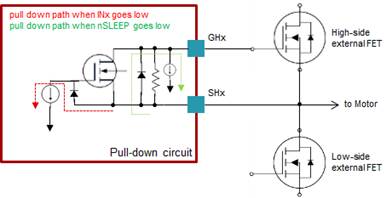 我最近在测试PLG项目中使用的DRV8702-Q1时发现SH-x管脚并不是Hi-Z模式,请问这个是为什么?SH-x管脚的内部阻抗(或者灌电流)的范围是多少?