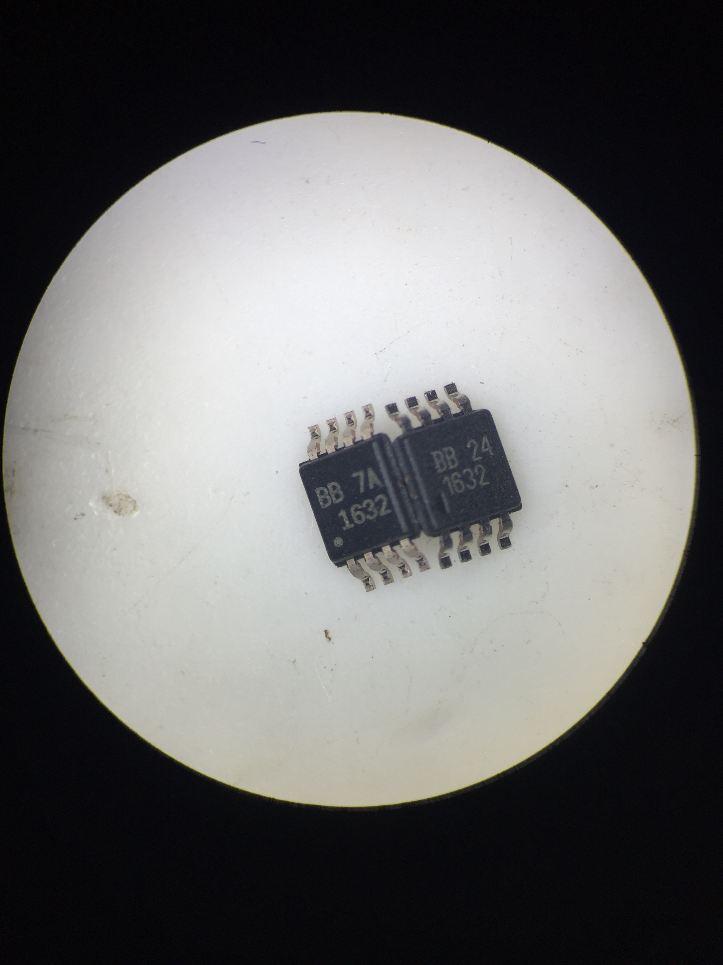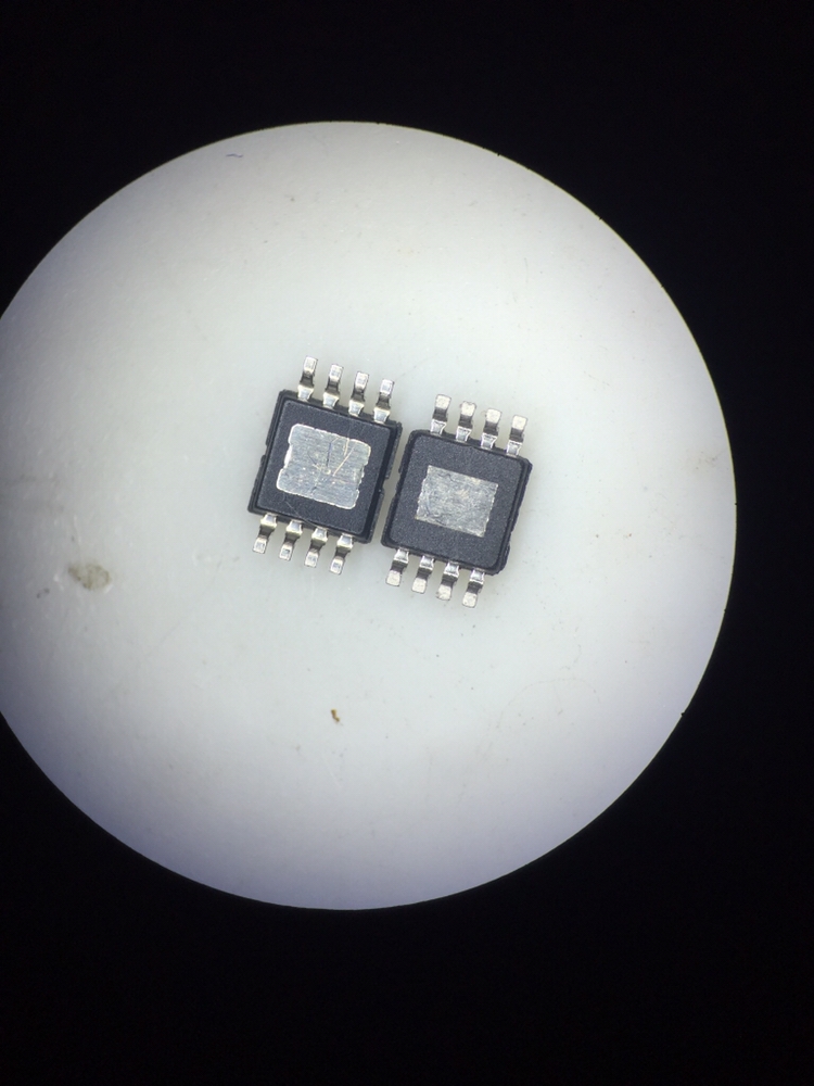 向贵公司反映一个问题、是否存在仿冒产品!我在两个销售渠道分别买了一个OPA1632芯片进行了外观对比和部分引脚的内阻对比,发现这两个同型号的芯片有很大差异的。内阻和外观结果如下;