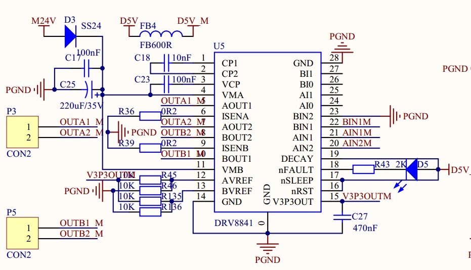 原理图上D3改为直连,R36,R39改为0,AVERF直连V3P3OUT, 直流电机实际电流为200MA,仍然出现FAULT,需要重新上电才正常