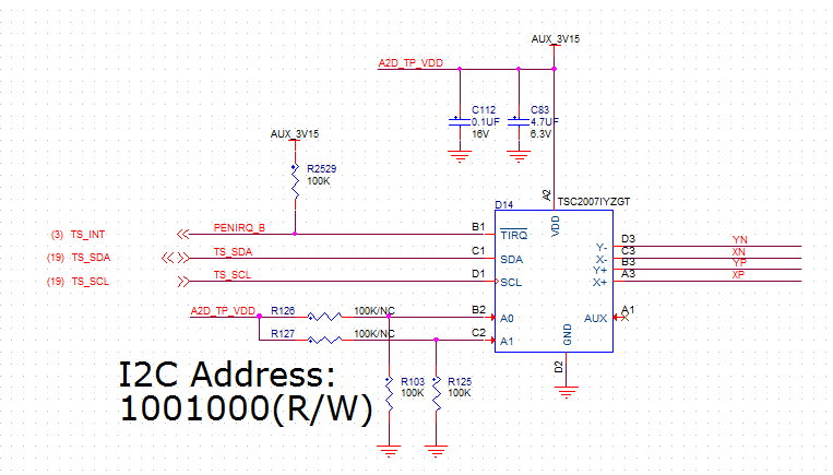 我用TSC2007IYZGT做了一个电阻屏驱动电路,AUX脚悬空。