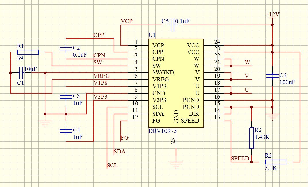 DRV10975用在摩托车油泵项目上,附件为原理图及贴片图,今天测试的时候(30套样机)发现芯片都会大量发热,没几分钟后就保护了,产品不能正常运行,请看是否是哪里有什么问题,是否硬件设计有错,请帮忙看一下,谢谢~