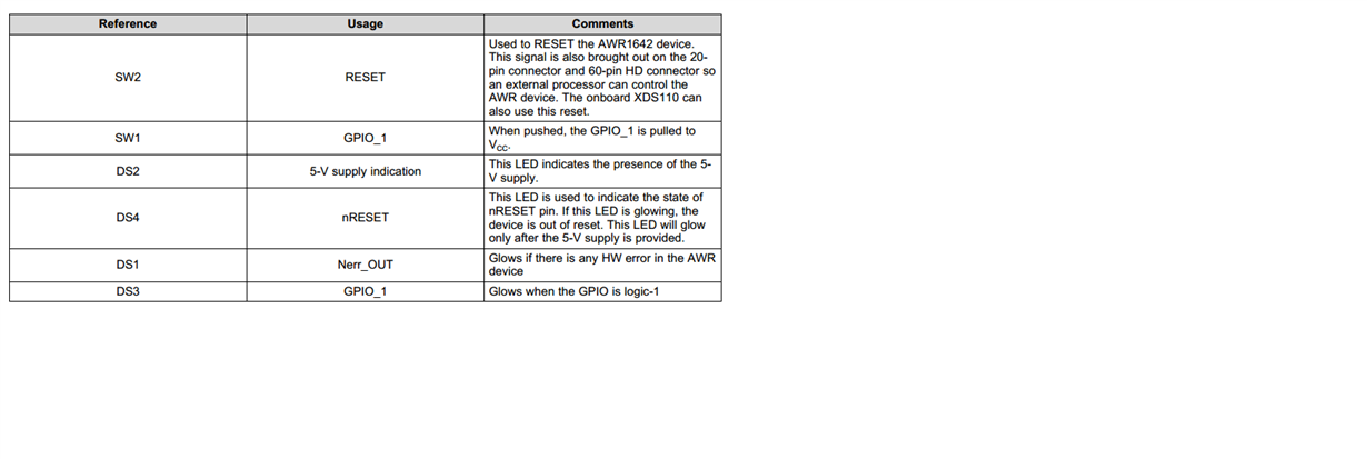 EVM板给出了最基本的使用方式,一个用于按键,是输入管脚,一个用于LED,是输出。