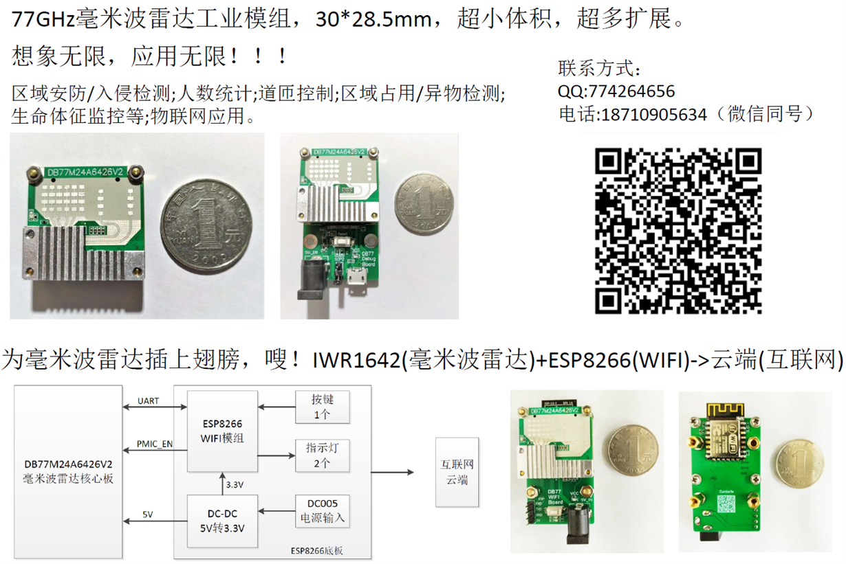 为毫米波雷达插上翅膀,嗖!!! IWR1642(毫米波雷达)+ ESP8266(WIFI)->云端(互联网)